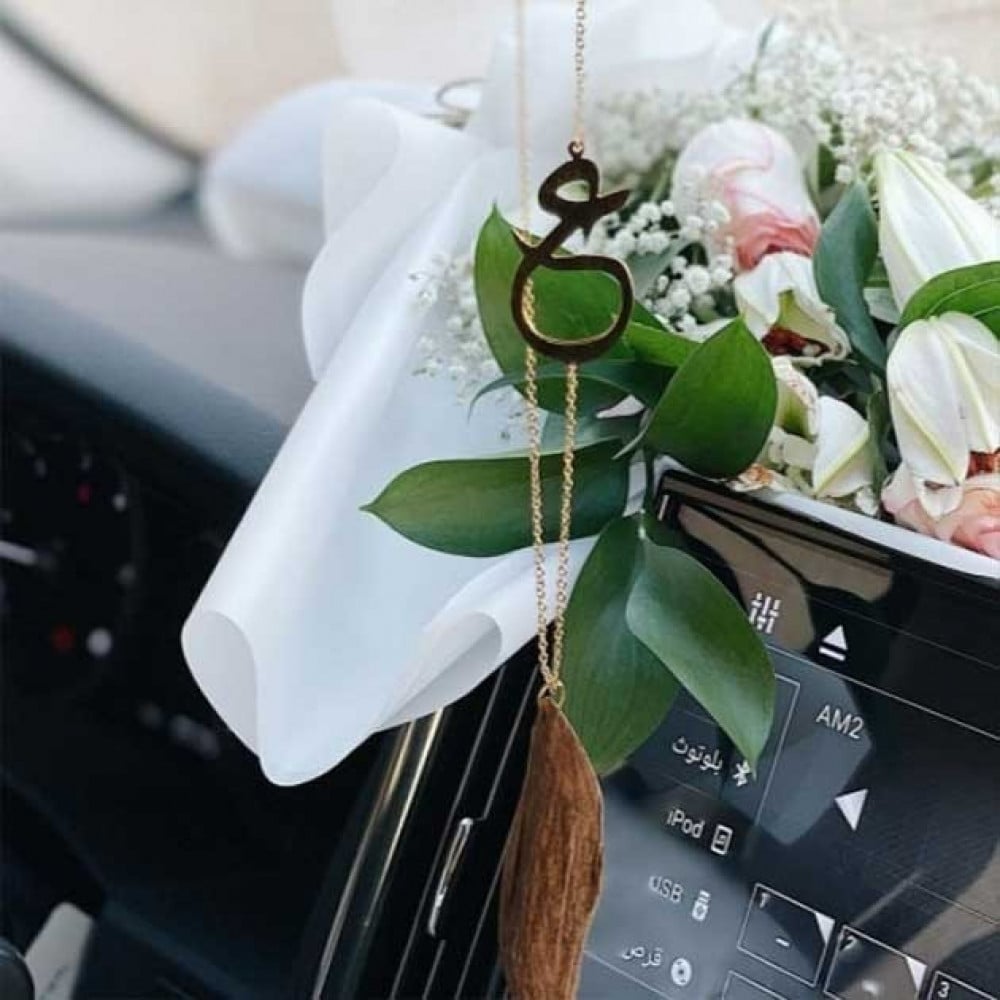 أضف تميزاً لسيارتك مع تعليقة سيارة مخصصة بالحرف، مطلية بـ الذهب أو الفضة ومزودة برائحة كسرة العود الفاخرة. صُنعت بعناية في متجر العروس باستخدام تقنية الليزر لضمان أدق التفاصيل وجودة فائقة.
